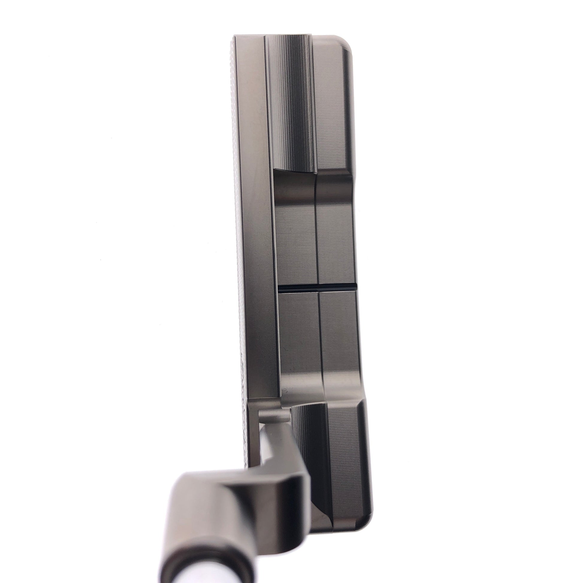 Tour-inspired, angular solid stainless steel blade with tri-sole design, tungsten weights and refined I-beam plumbing neck.